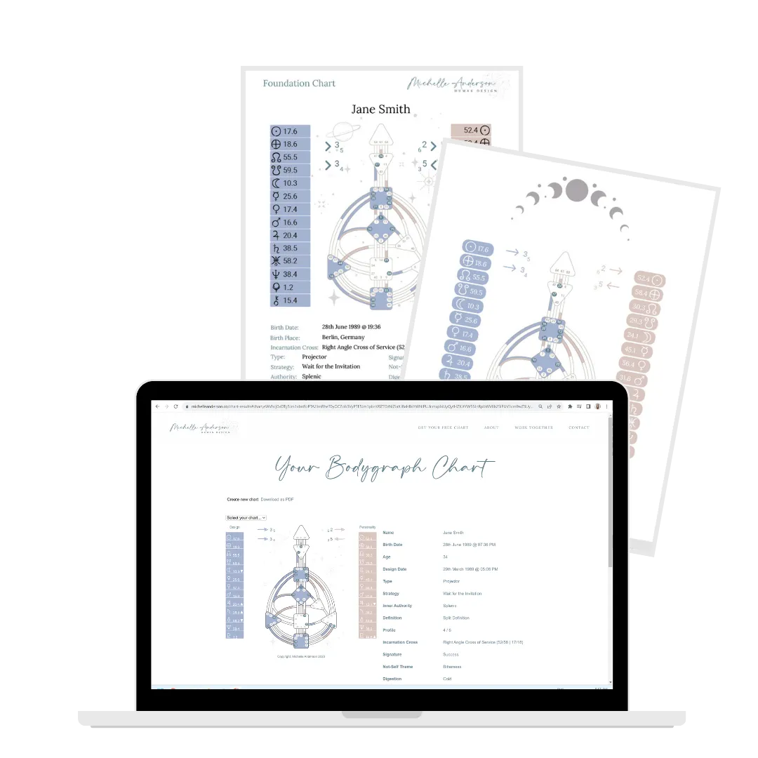 Human Design is a system that integrates the wisdom of several modalities including Astrology, Kabbalah, Chakras, and the I Ching. It proposes that the energy of the universe and the cosmic setup at the time of your birth and on your ‘design date’ (approx 88 days prior) determine how you were designed to be in this lifetime. The Human Design Chart, or Bodygraph, is considered your unique energy map, guiding how you move through life.
